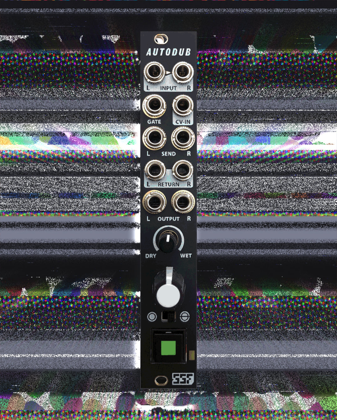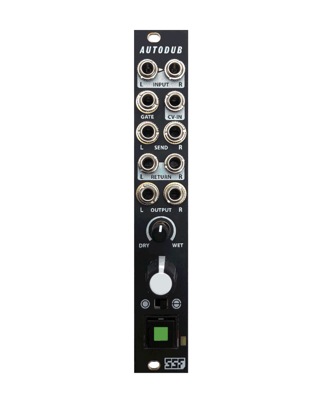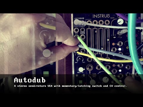 AUTODUB is a DC coupled stereo VCA tailored for interactive dub style effects and event generation via a live performance friendly effect send activation button.