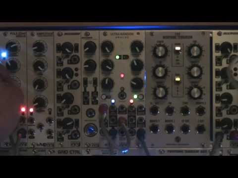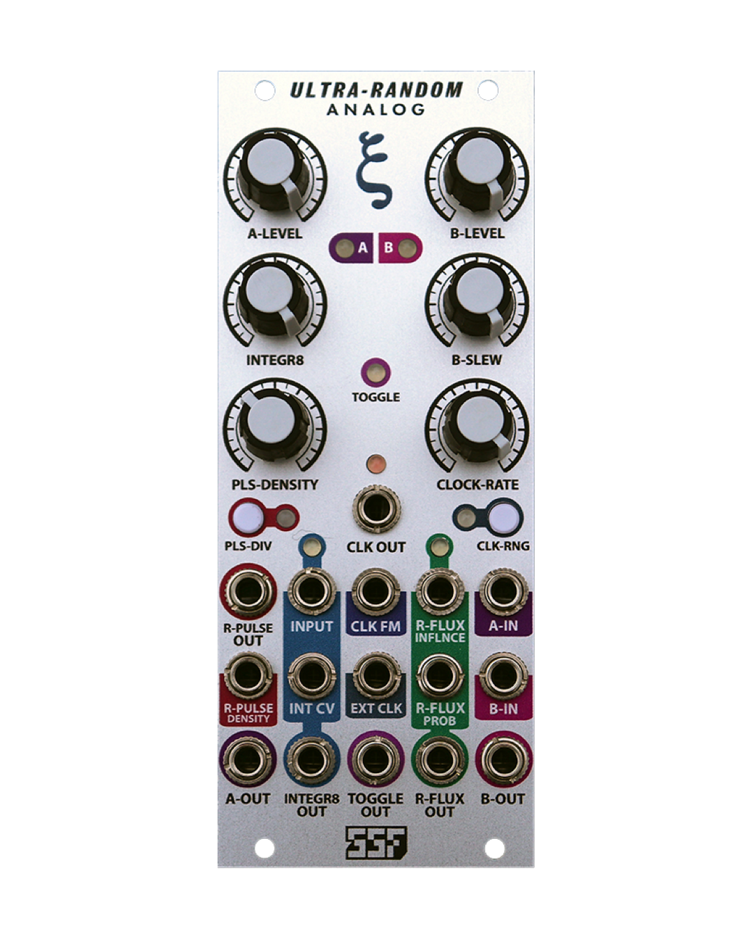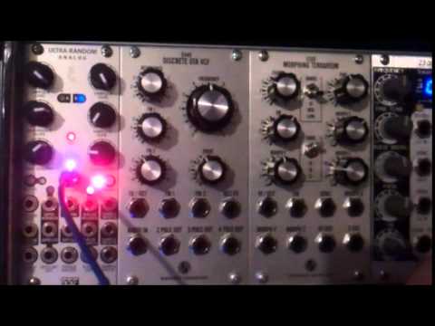 The Ultra-Random Analog is a random voltage generator with six random outputs including two clocked stepped random outputs - one with built in logarithmic slew, a third stepped output that toggles between two internal noise sources or whatever is patched into the sample inputs, a fully voltage controllable smooth fluctuating random voltage output, a voltage controllable random gate/noise with 7 selectable levels of randomness and an independent vactrol based voltage controllable integrator - all with a built in 1V/Oct tracking voltage controlled clock. The URA can additionally function as a dual Sample and Hold, capable of wave shaping and sample reducing CV and audio.
